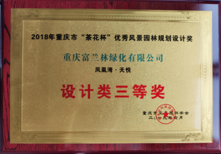 富蘭林公司設計的鳳凰灣·天悅園林景觀(guān)項目,榮獲由重慶市風(fēng)景園林學(xué)會(huì )舉辦的2018年重慶市“茶花杯”優(yōu)秀風(fēng)景園林規劃設計類(lèi)三等獎,為富蘭林公司成為美好社區景觀(guān)服務(wù)商的經(jīng)營(yíng)理念再添一筆精彩的注腳。
